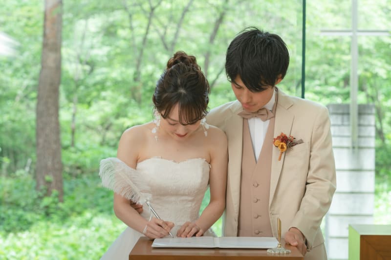お店でご用意している結婚証明書への記入シーンも撮影します!