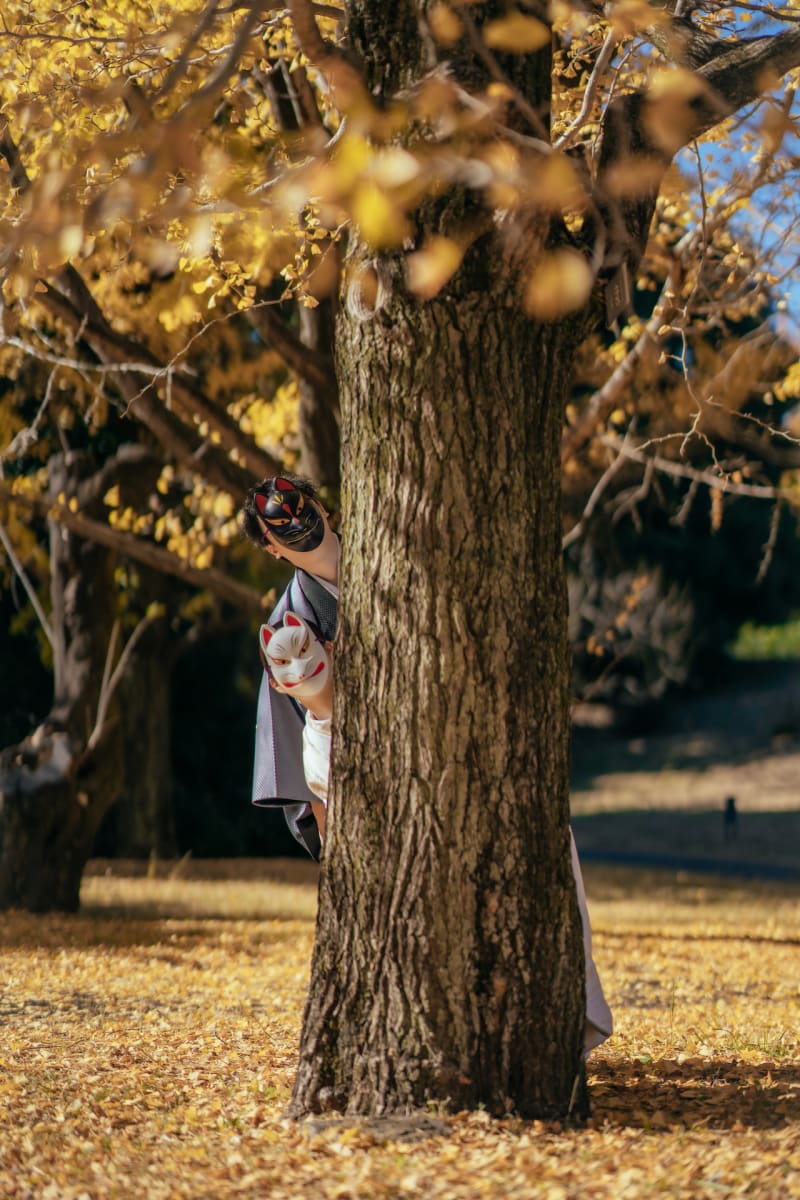 狐のお面を使ったお茶目な写真を残せました📸