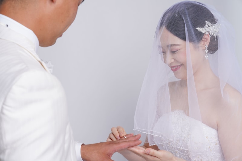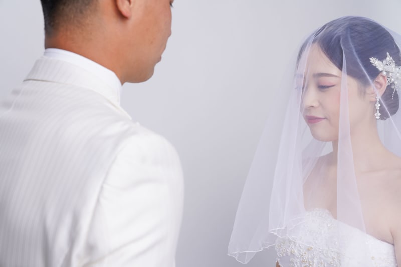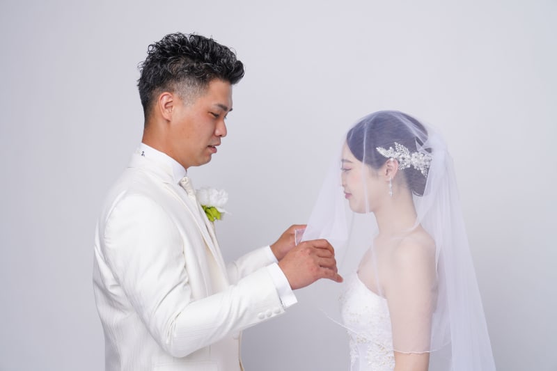 ベールアップのシーンです。挙式風のお写真を完璧なライティングを組んで綺麗に撮影しましょう!
