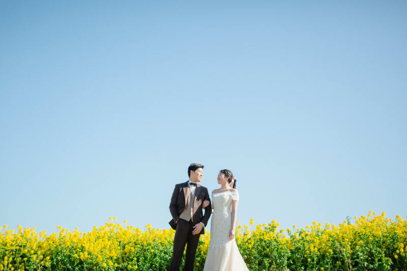 おふたりの表情も、青空に負けないくらい爽やか〜