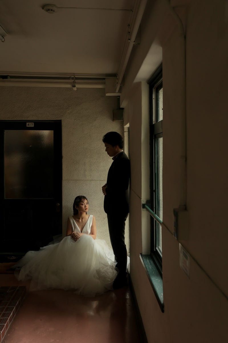 他では感じられないレトロ感・ヴィンテージ感は、少しの懐かしさが、逆に新しく感じられる大阪市内のレトロビルでのフォトウェディングです。