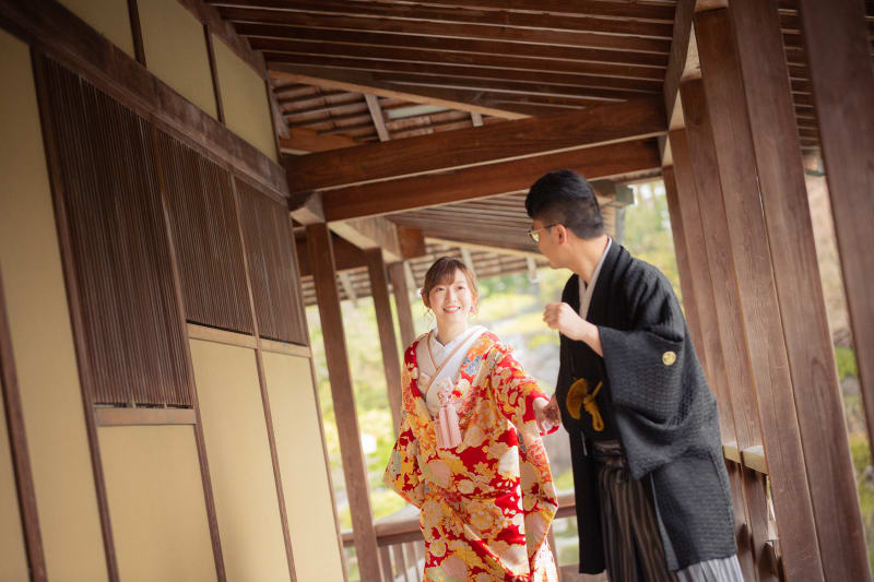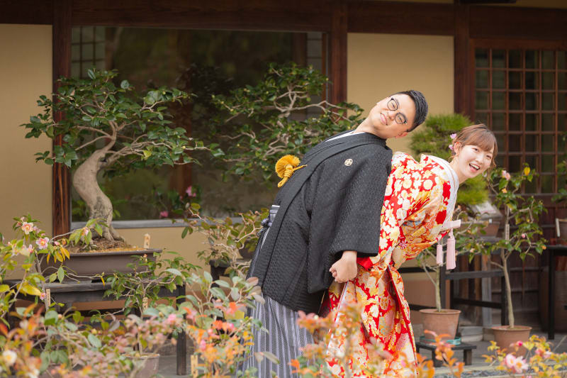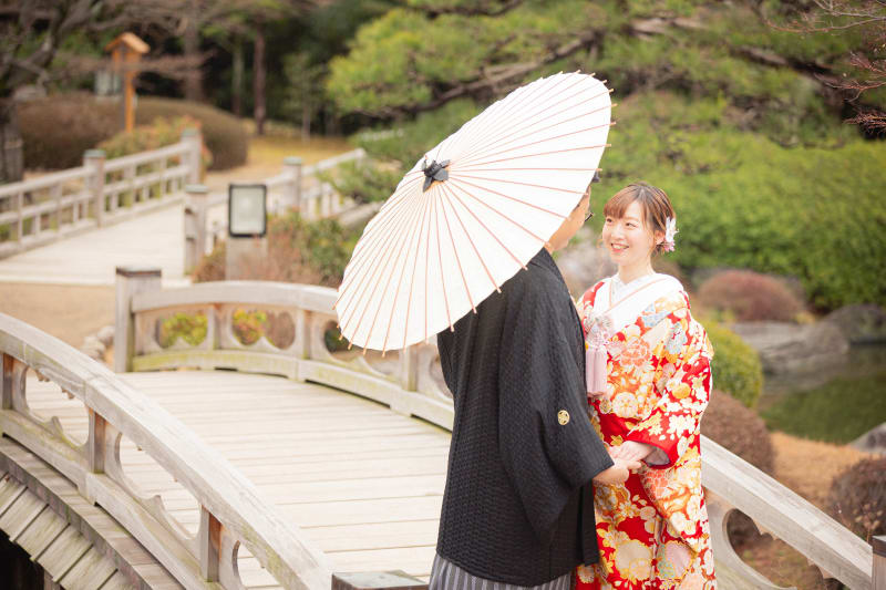 整備された日本庭園が美しい大阪の大仙公園で和装のフォトウェディング