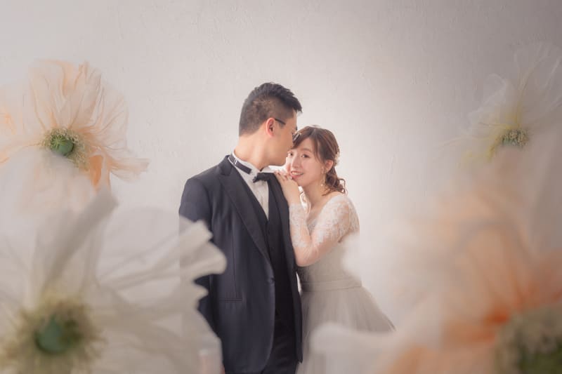 ジャイアントフラワーやフラワーウォール、シンプルな白壁など、イメージ豊富な撮影セットでフォトウェディングをお楽しみください。