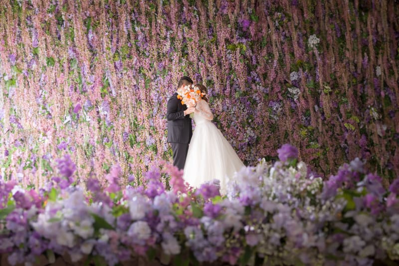 スタジオTVB梅田店、自慢のフラワーウォールでフォトウェディング。