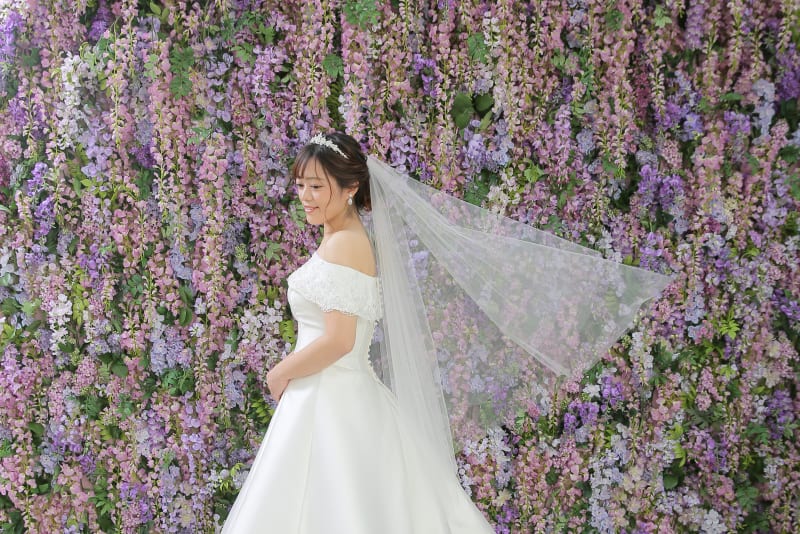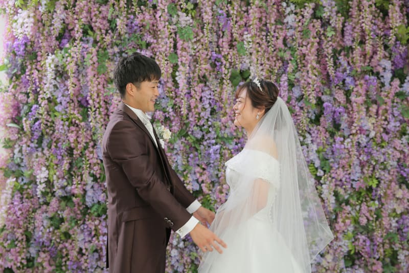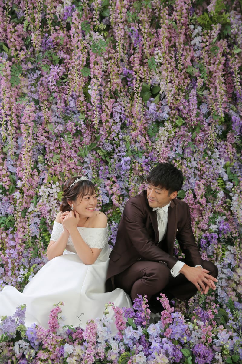 シンプルな背景で、おふたりの幸せな表情を主役にした一枚を