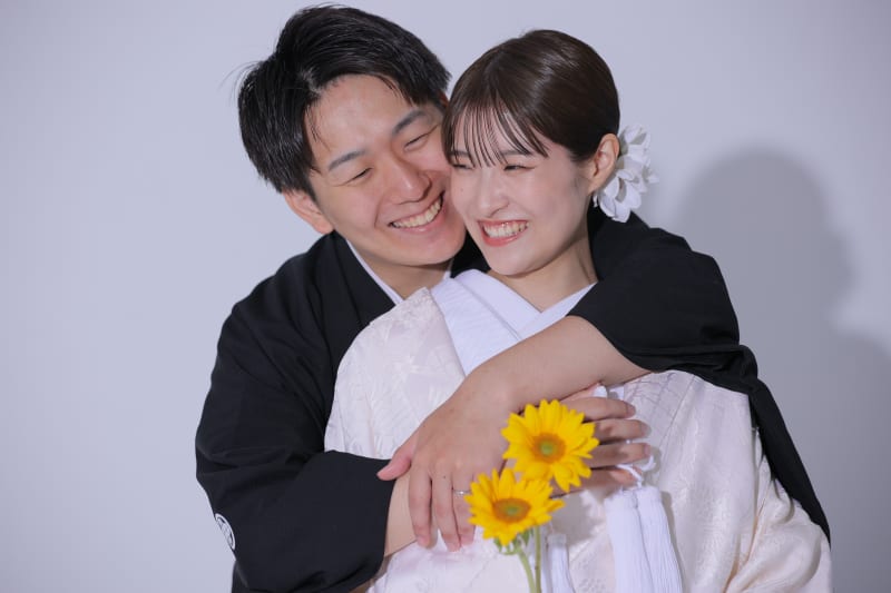 シンプルな背景で、おふたりの幸せな表情を主役にした一枚を