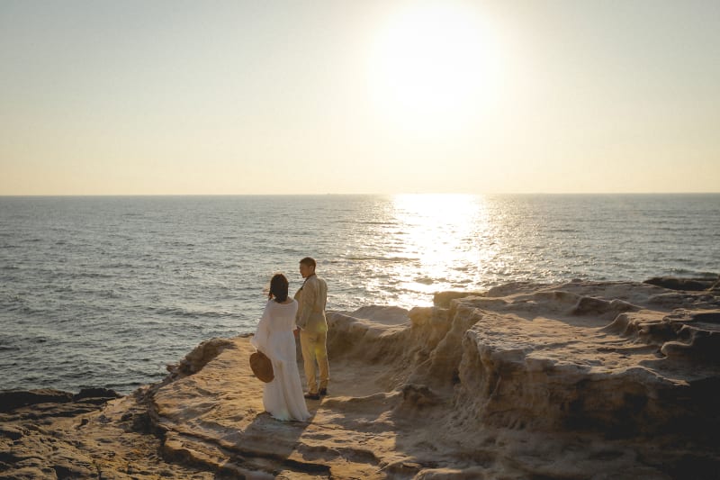 広い海とサンセット、スケール感あふれるフォトウェディング