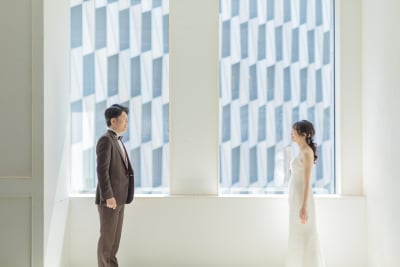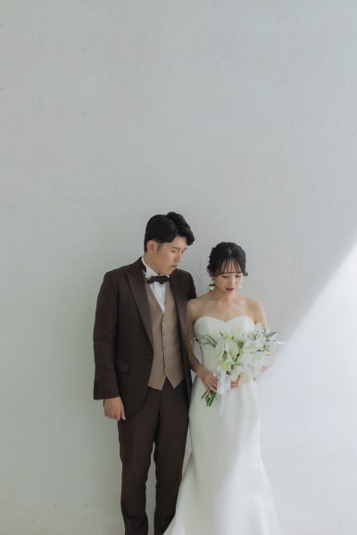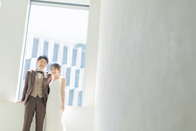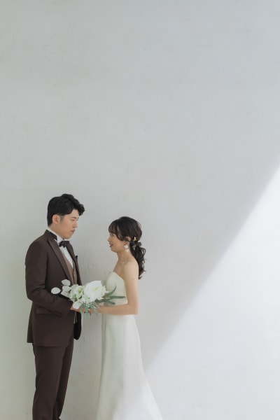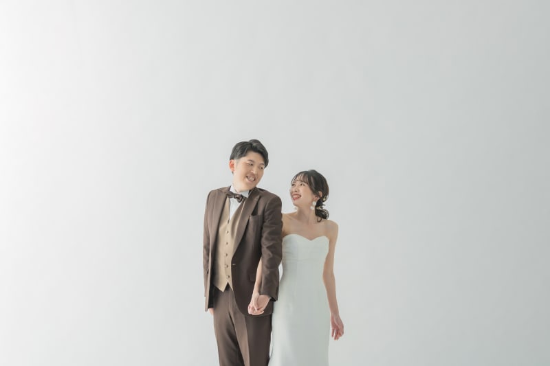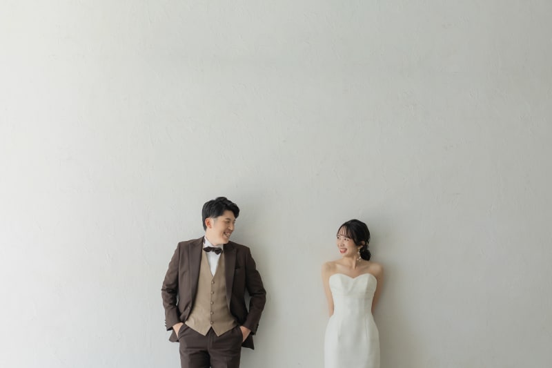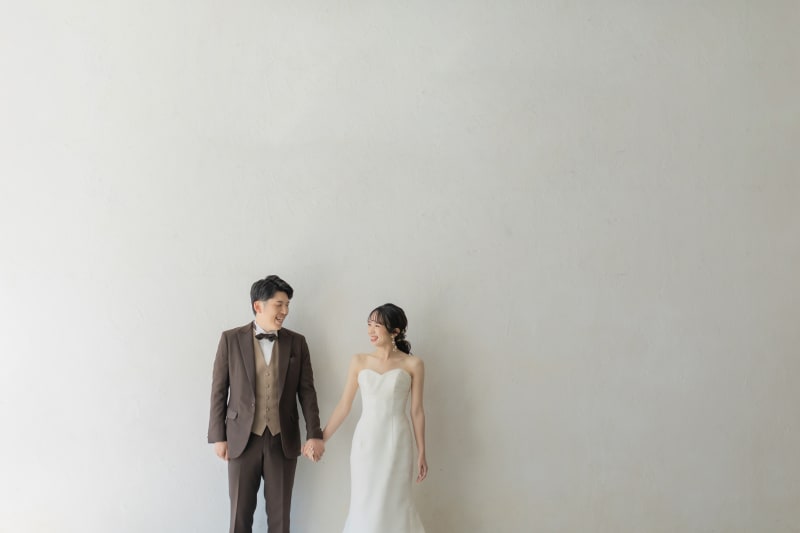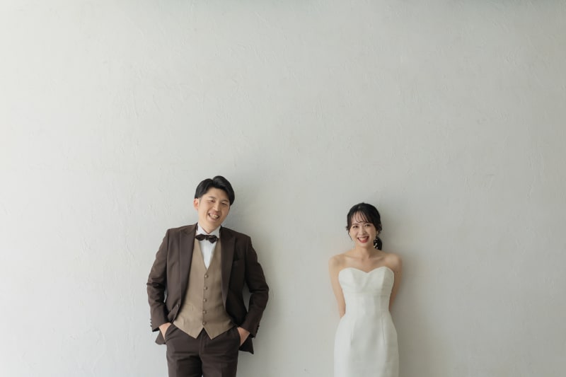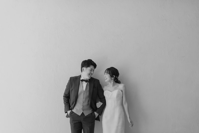 シンプルな背景で、おふたりの幸せな表情を主役にした一枚を