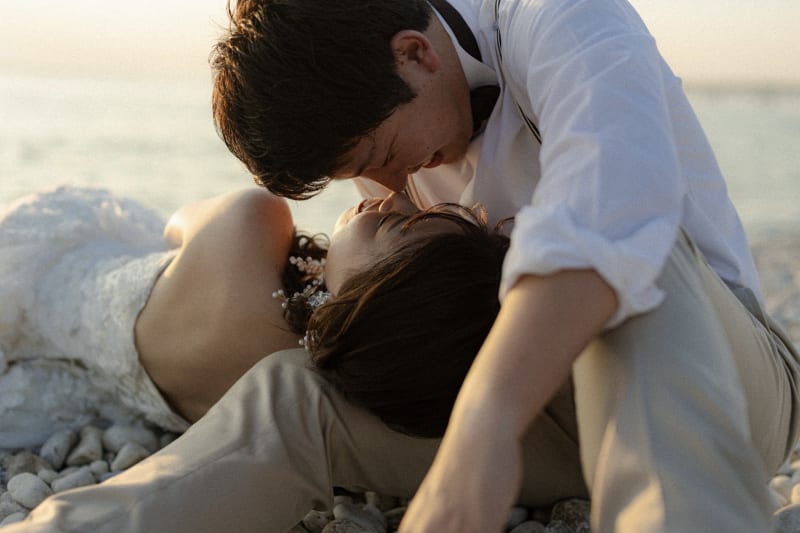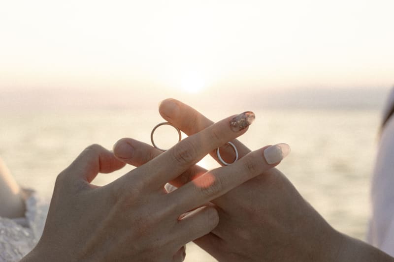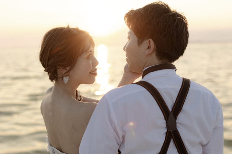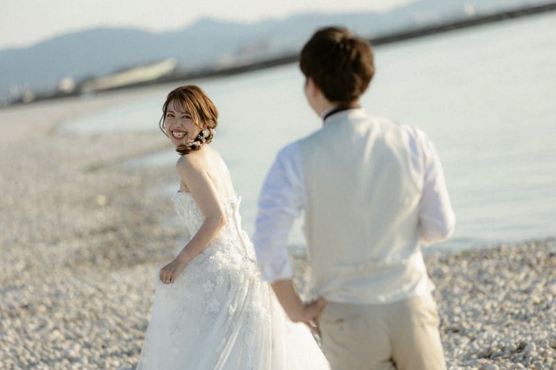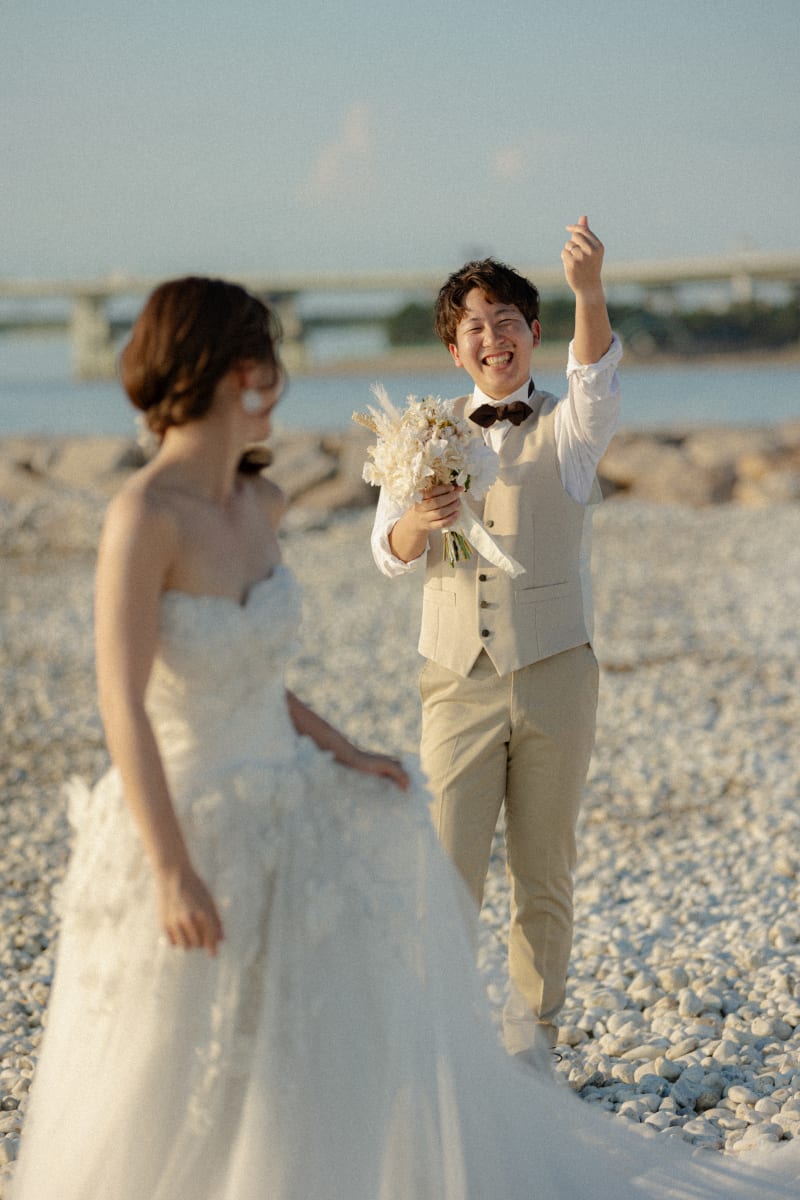 シンプルな背景で、おふたりの幸せな表情を主役にした一枚を