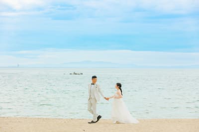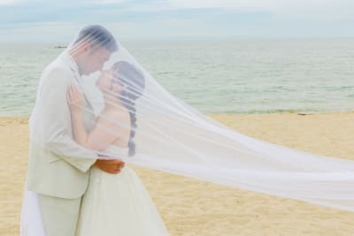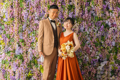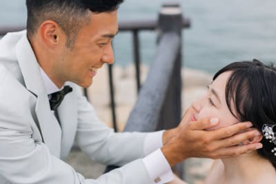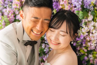 シンプルな背景で、おふたりの幸せな表情を主役にした一枚を