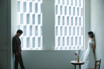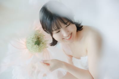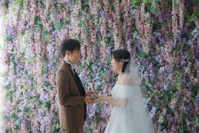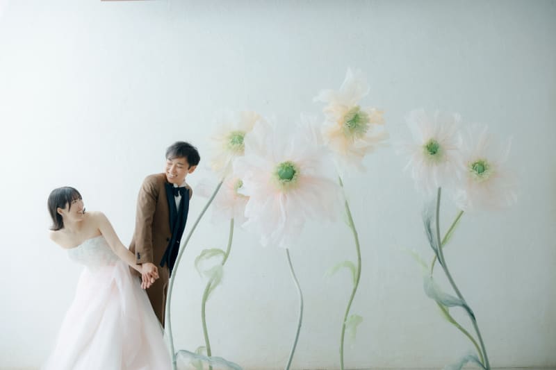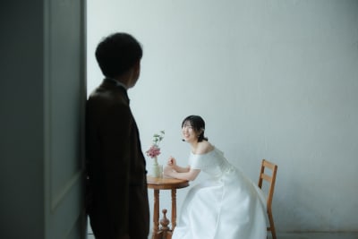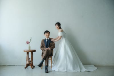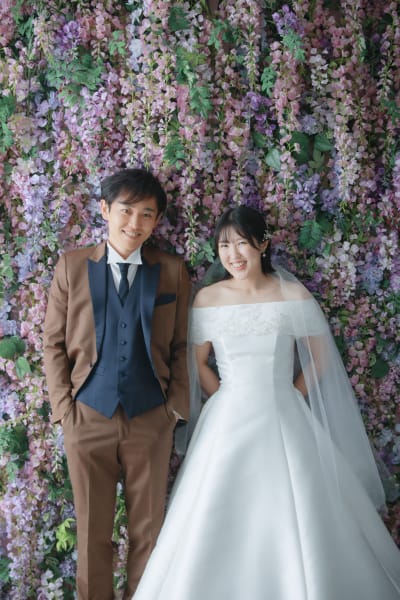 シンプルな背景で、おふたりの幸せな表情を主役にした一枚を