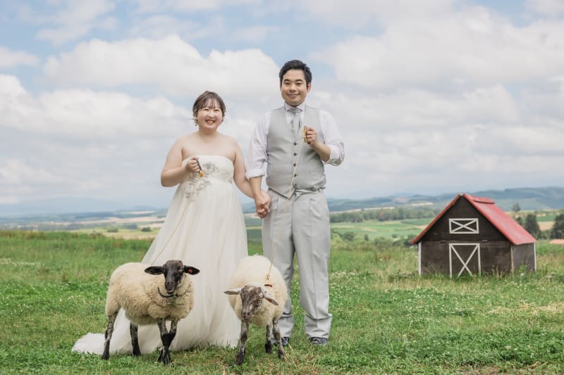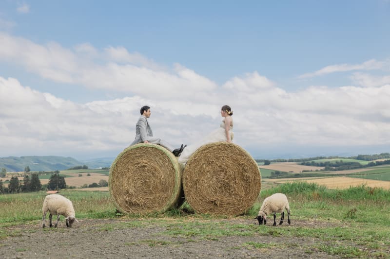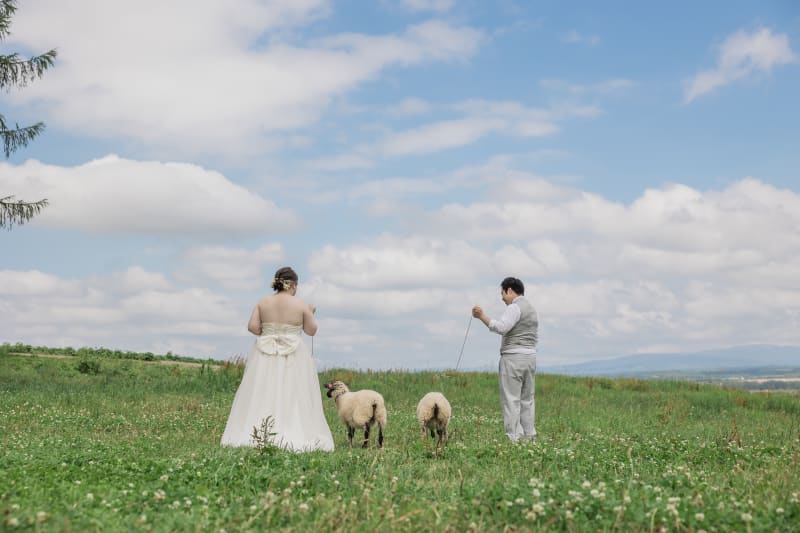 美瑛ロケのため、歩きやすくカジュアルな雰囲気のドレスを選ばれた新婦様!