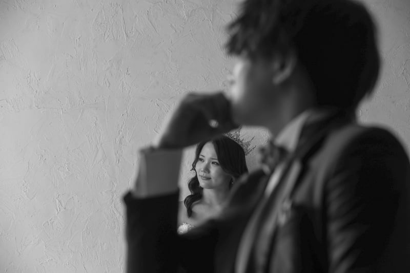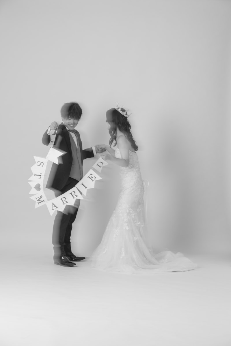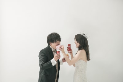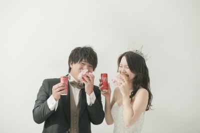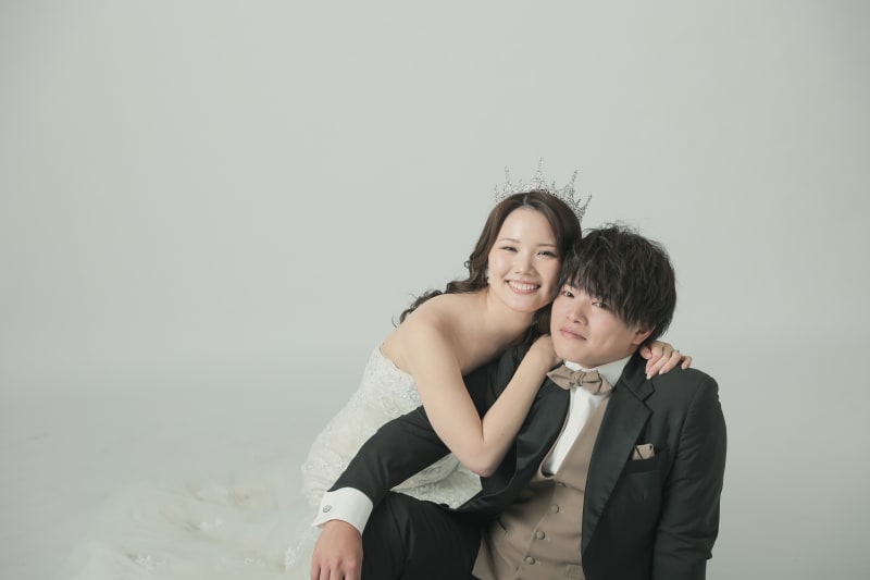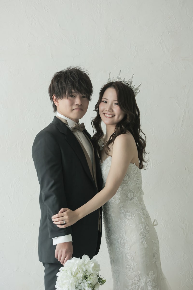 シンプルな背景で、おふたりの幸せな表情を主役にした一枚を