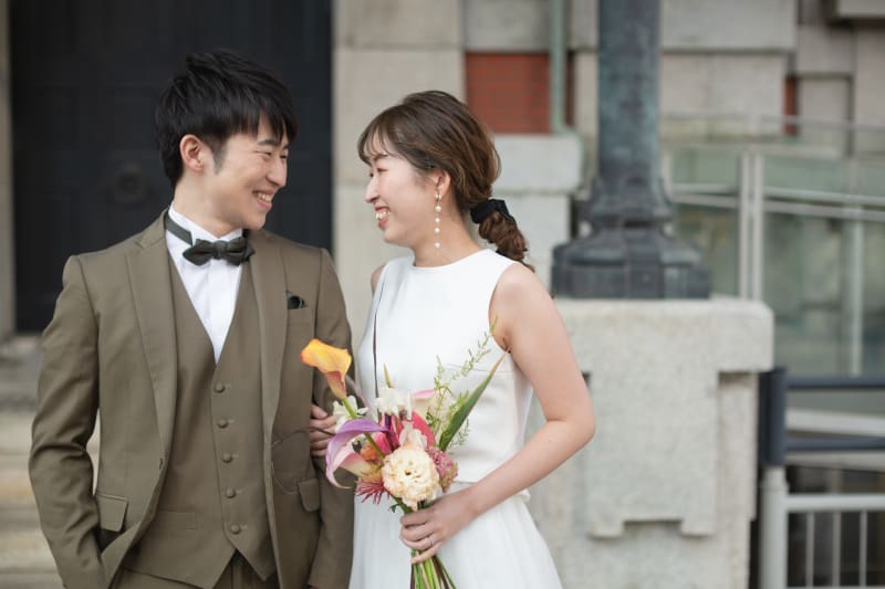 お2人ともオシャレにまとめて撮影地の中之島公会堂の雰囲気にピッタリでした!🥺🤍✨