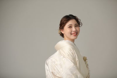 シンプルな背景で、おふたりの幸せな表情を主役にした一枚を