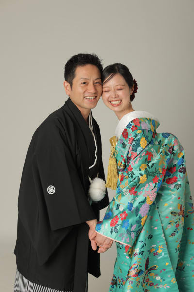 シンプルな背景で、おふたりの幸せな表情を主役にした一枚を