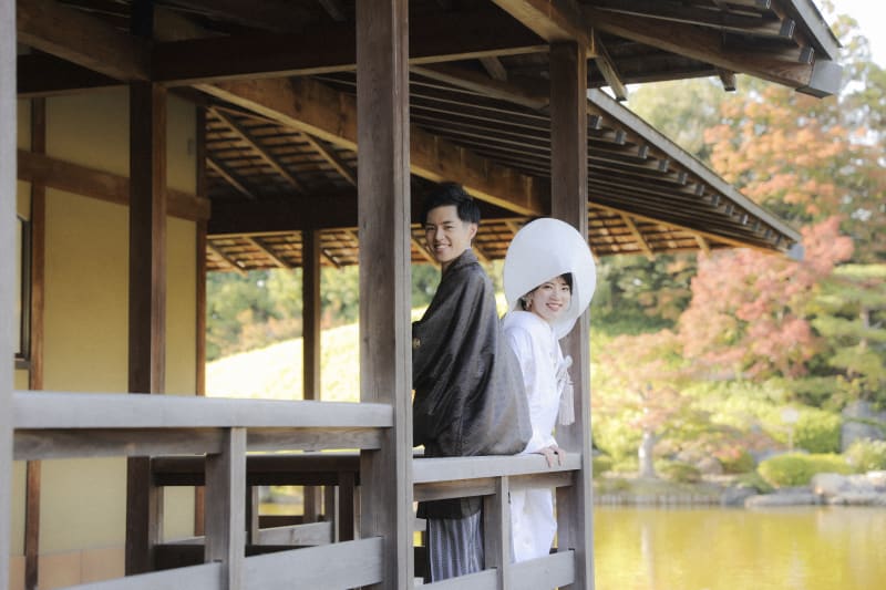柔らかな洋髪姿と、しっとりとした厳かな綿帽子姿。