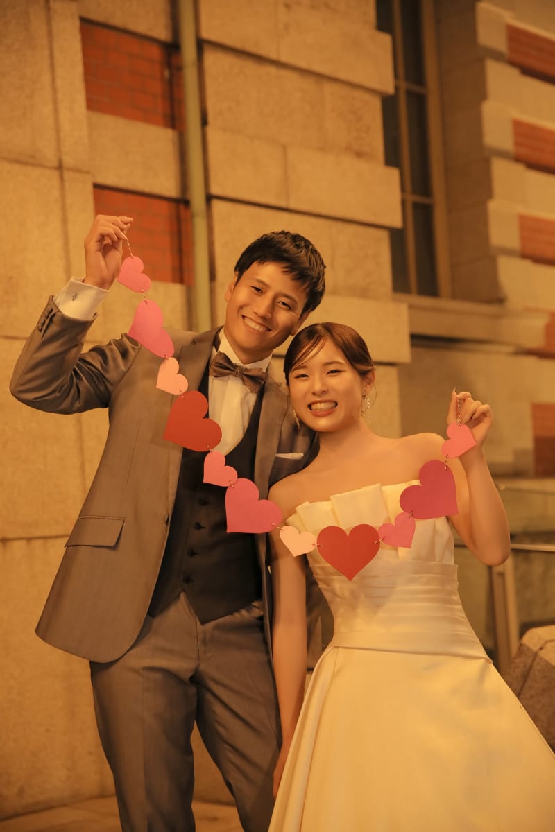 様々な色味のハートとお2人の笑顔がミックスになっていてより一層輝いて見えますね🤩