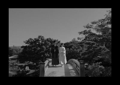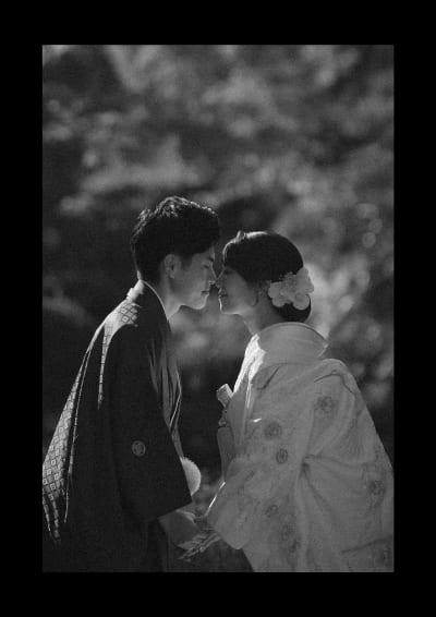モノクロ写真では、光と影のコントラストが重要な要素となります。新郎新婦のシルエットや差し込む光を利用して、和装の姿を一層ドラマチックに表現することができます。