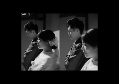 モノクロ写真では色が無いため、被写体の表情や仕草、姿勢がより強調されます。和装婚礼では、緊張感や喜び、愛情が細かい表情や身体の動きで表現されるため、その瞬間を切り取った写真が感情豊かに伝わります。