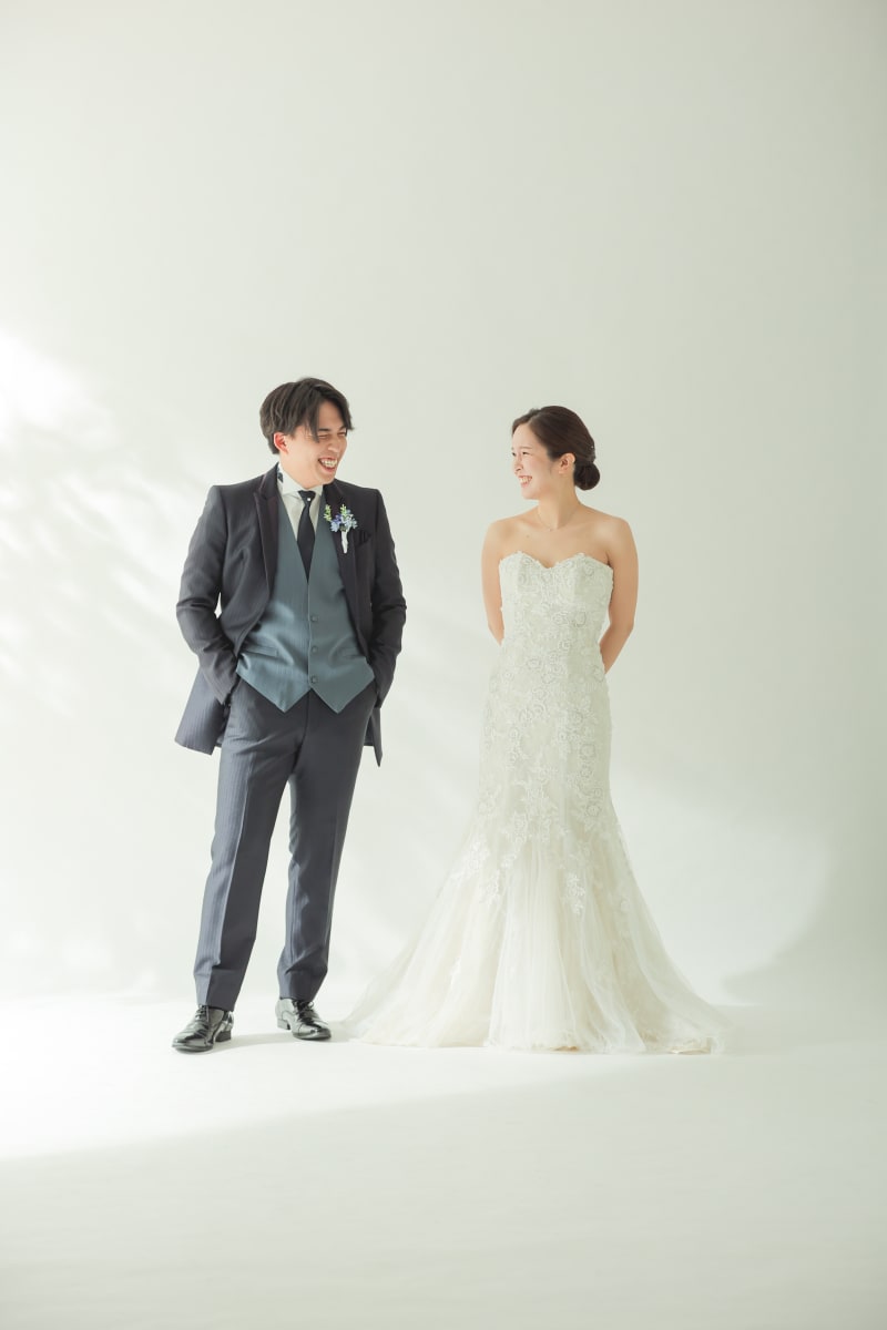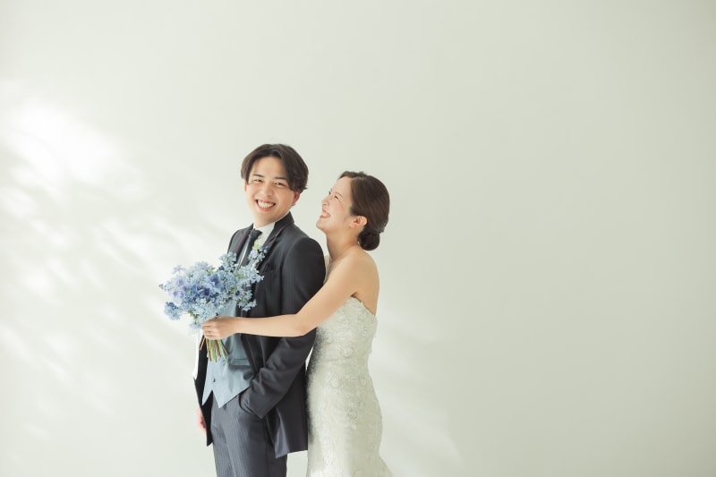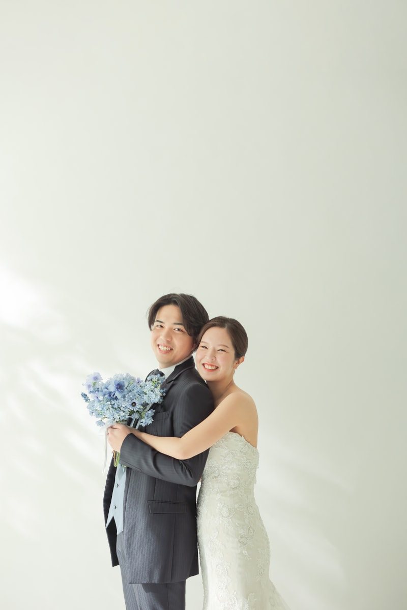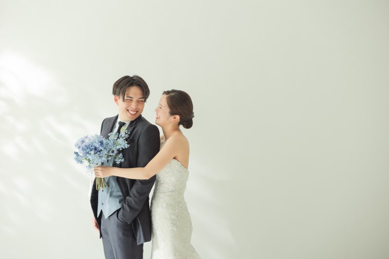 シンプルな背景で、おふたりの幸せな表情を主役にした一枚を