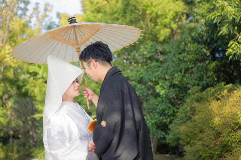 白無垢や色打掛での撮影は、日本の伝統美を感じるひととき。庭園の緑や紅葉の中で撮る一枚は、家族やゲストにも誇れる特別な写真になること間違いなしです。