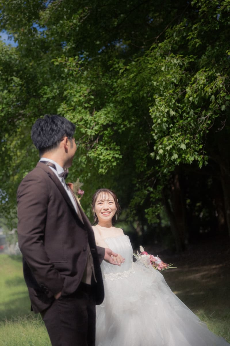 ドレスに着替えたら、一気に雰囲気を変えてロマンティックな撮影タイム!光あふれる自然の中で撮影する写真は、おふたりの幸せが伝わるようなナチュラルで素敵な仕上がりに。