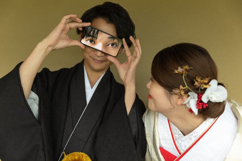 赤の懐剣に負けずに輝いているのは新婦様の笑顔です🤩✨
