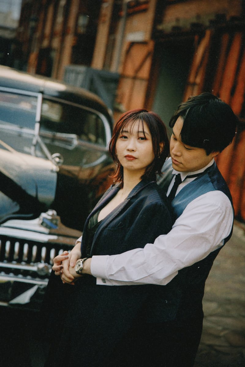 ヴィンテージカーを背景にしたおしゃれなショットなど、どのシーンも見応えたっぷり!