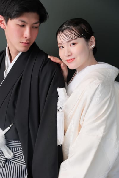 シンプルな背景で、おふたりの幸せな表情を主役にした一枚を