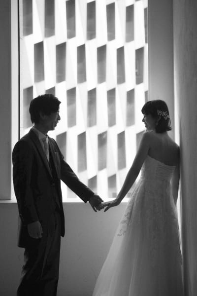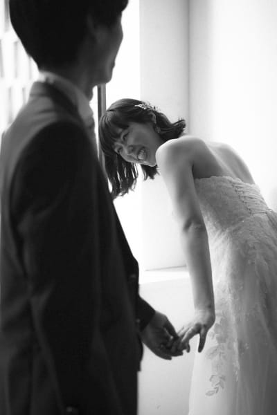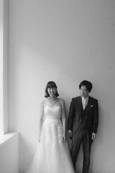 シンプルな背景で、おふたりの幸せな表情を主役にした一枚を