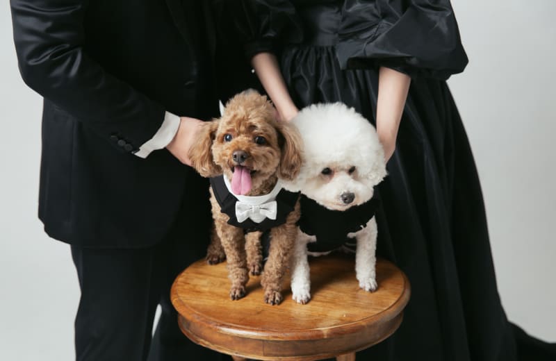 シンプルな背景で、おふたりの幸せな表情を主役にした一枚を