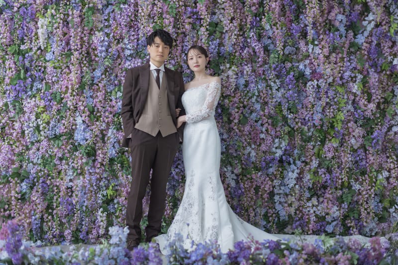 シンプルな背景で、おふたりの幸せな表情を主役にした一枚を
