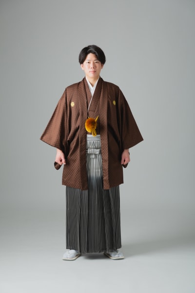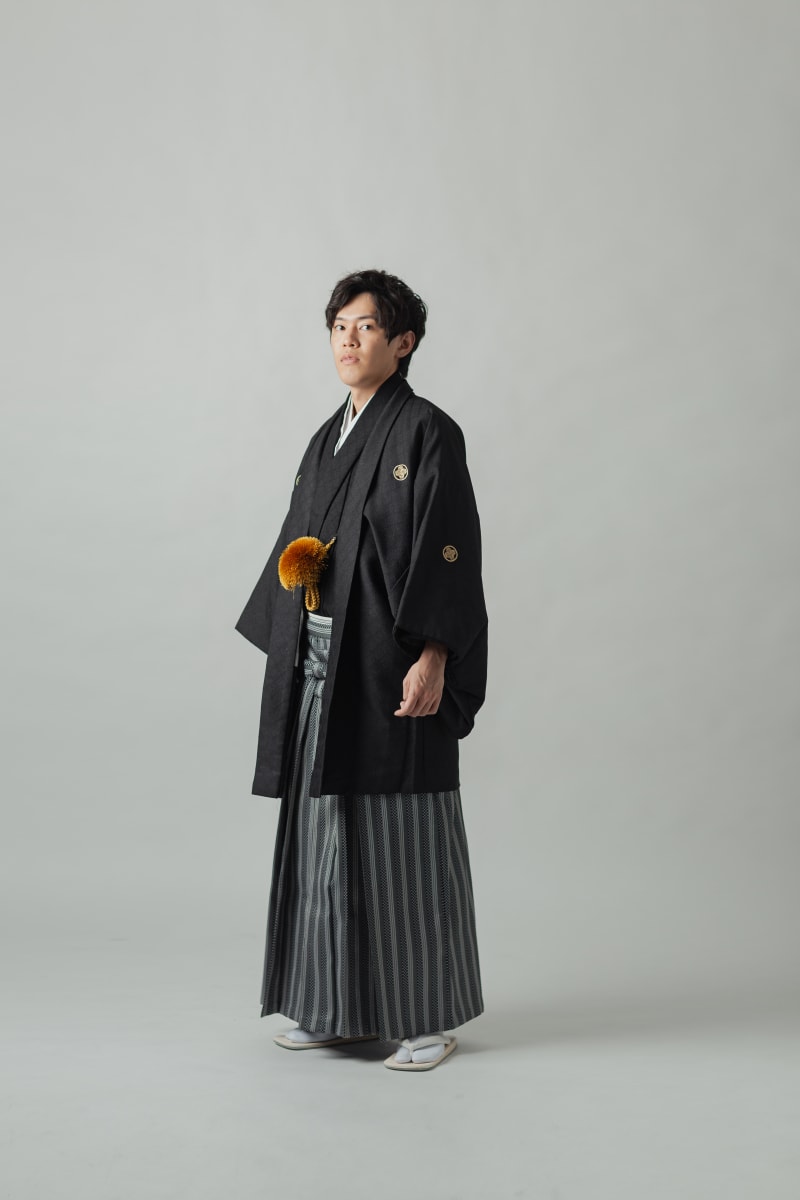 重厚感のある黒の紋服✖️グレーの袴はより新郎様をかっこよく写してくれます!