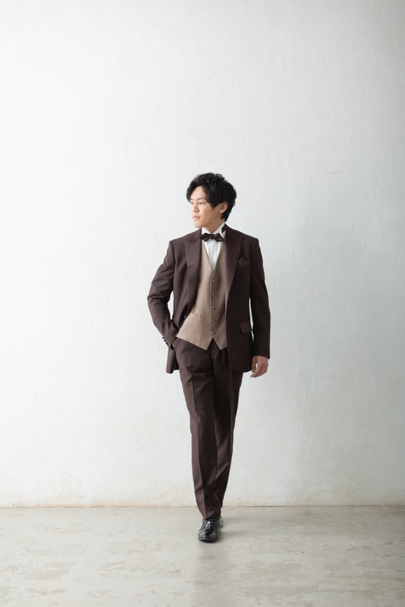 こちらのタキシードは、スタジオでもチャペルでも、自然いっぱいのロケ地でも