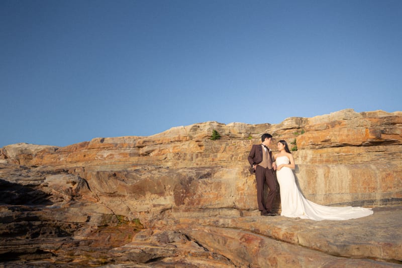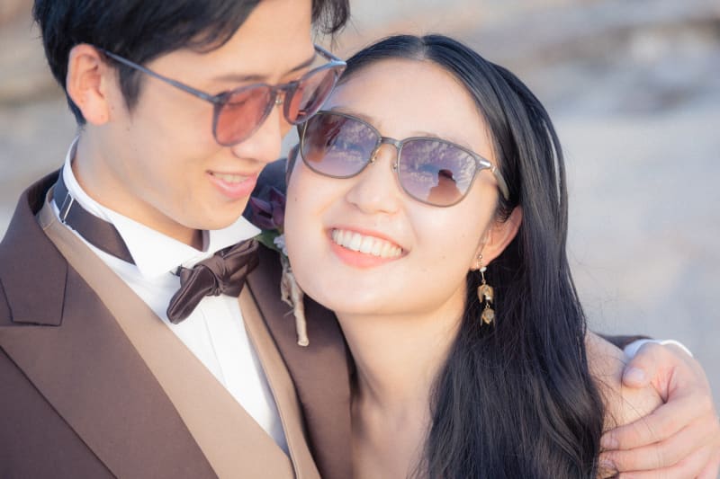 シンプルな背景で、おふたりの幸せな表情を主役にした一枚を