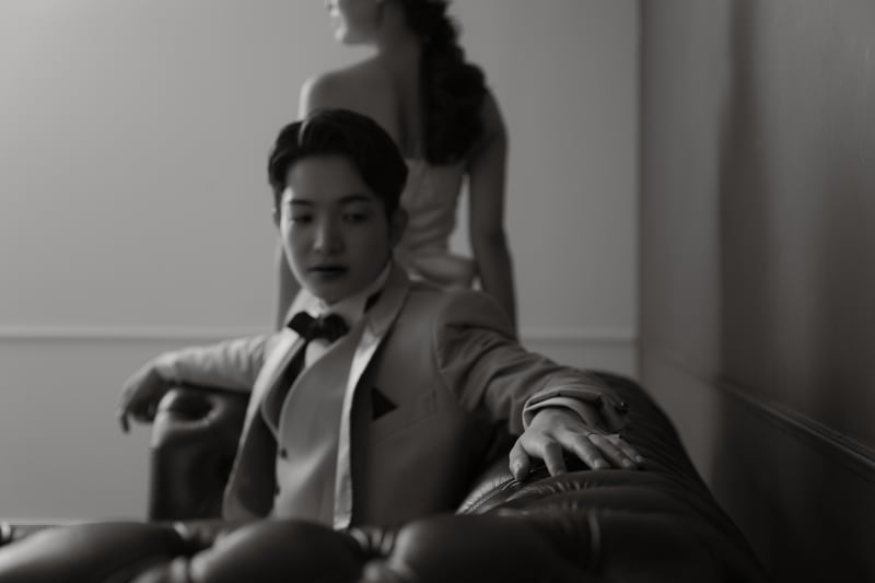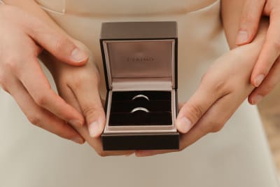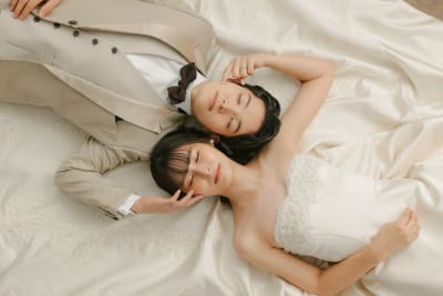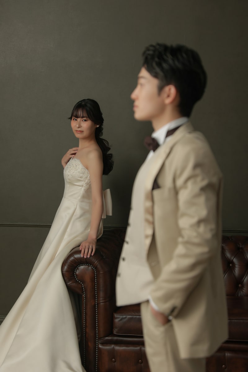 シンプルな背景で、おふたりの幸せな表情を主役にした一枚を