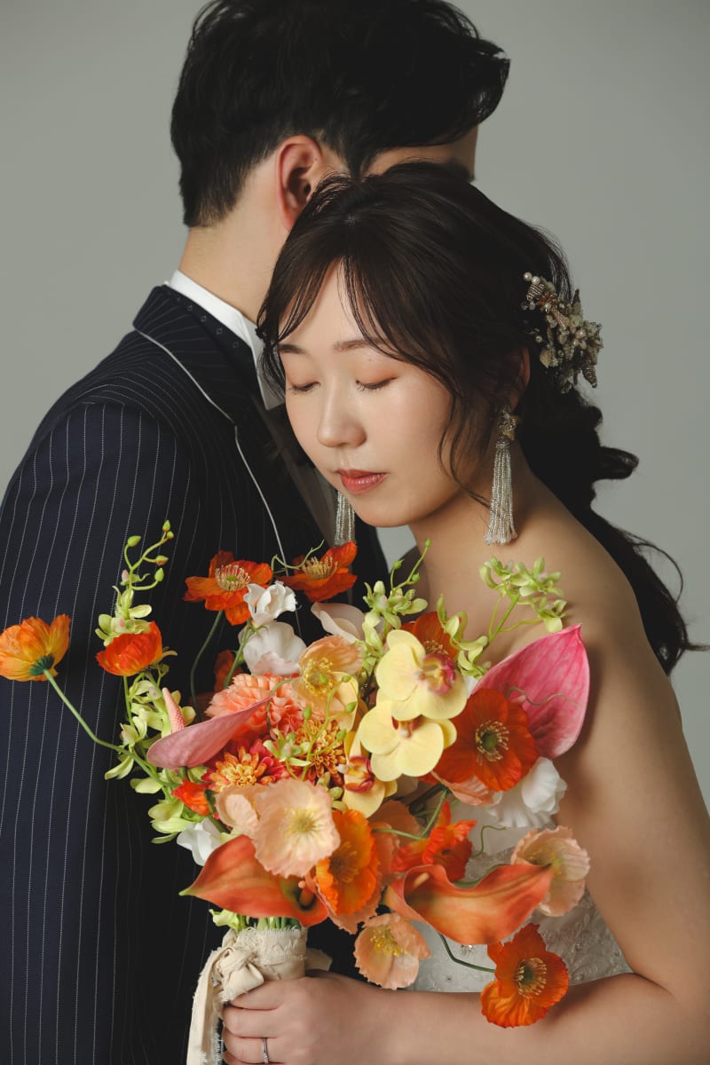 シンプルな背景で、おふたりの幸せな表情を主役にした一枚を
