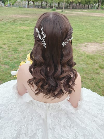 新緑やお花畑では、ハーフツインやダウンスタイルが人気です!