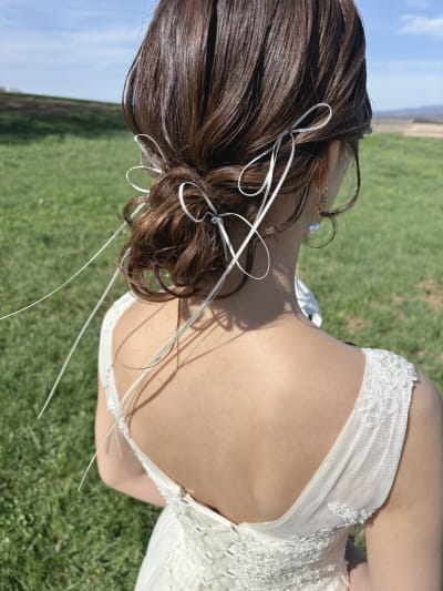 ハーフツインご希望で、卒業式の時にも使用した思い出の髪飾りを持ってきてくださりました!