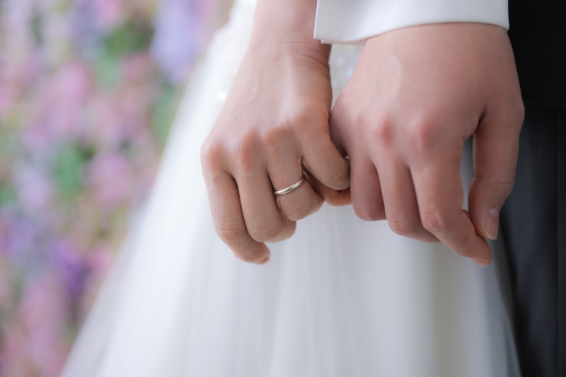 手を重ねている二人の後ろ姿♡