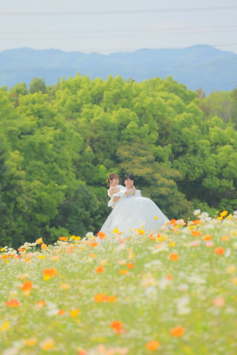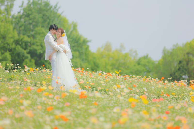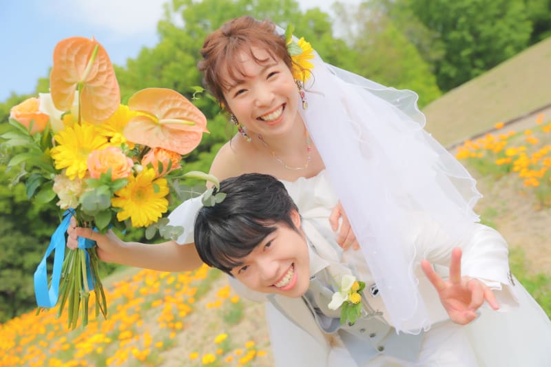 お花もお二人を祝福しているかのようでした!お天気も最高の撮影日和で何よりでした☺︎