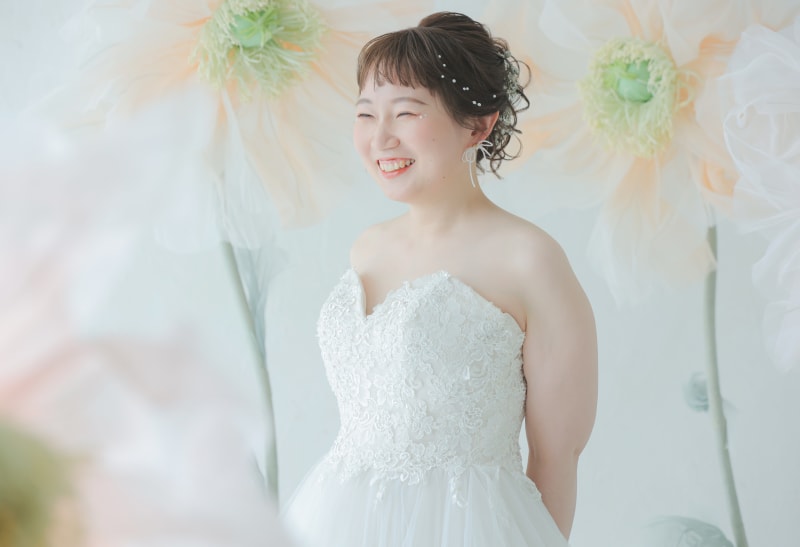 ヘアはシンプルなシニヨンで着物の小物に合わせて淡いグリーンのお花を飾りました