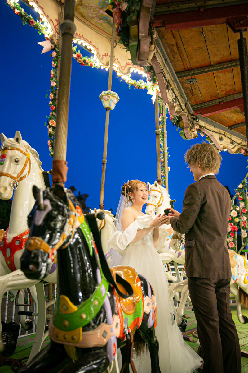 そして、メリーゴーランドの中でプロポーズ。新婦様の表情から幸せが溢れ出ていますね♡