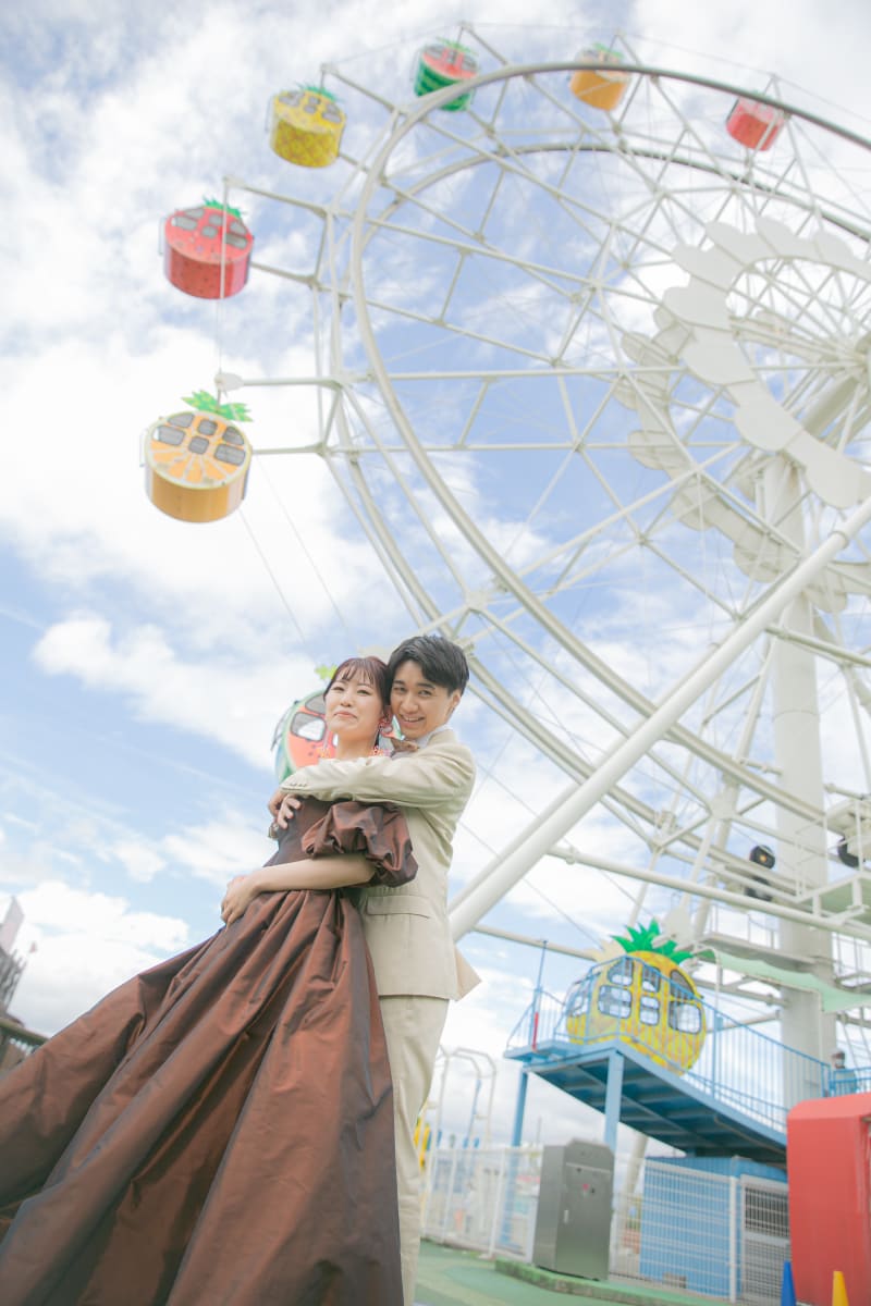大きな観覧車の前でハグ♡とてもロマンチックですね!!