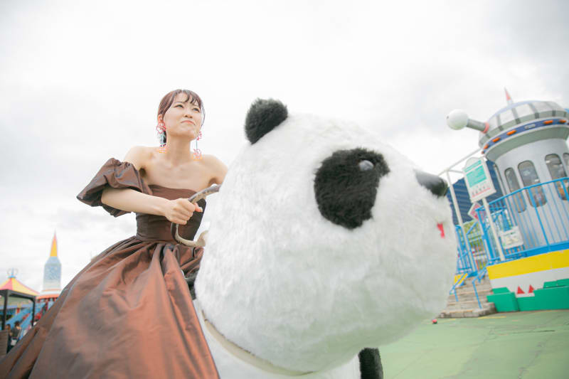パンダに乗って走らせる新婦様!笑い声が聞こえてきそうな楽しいお写真!