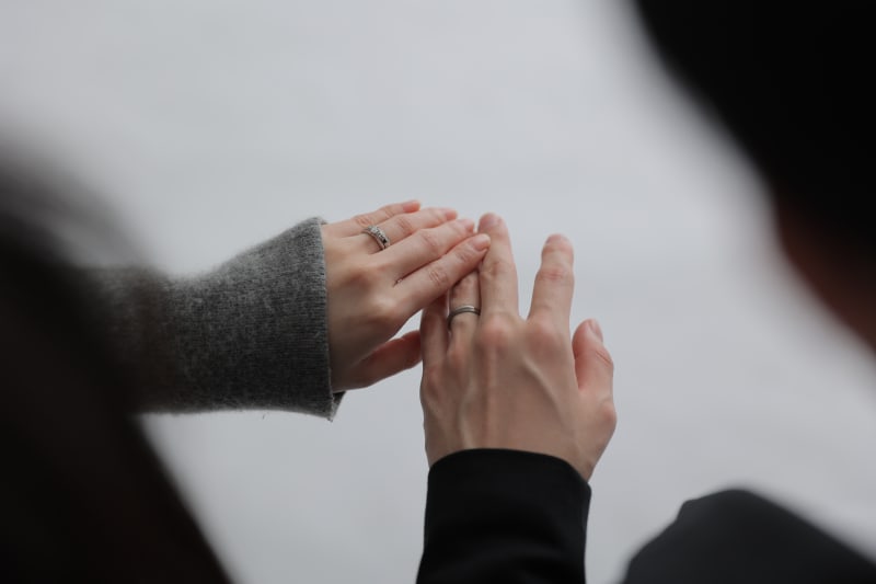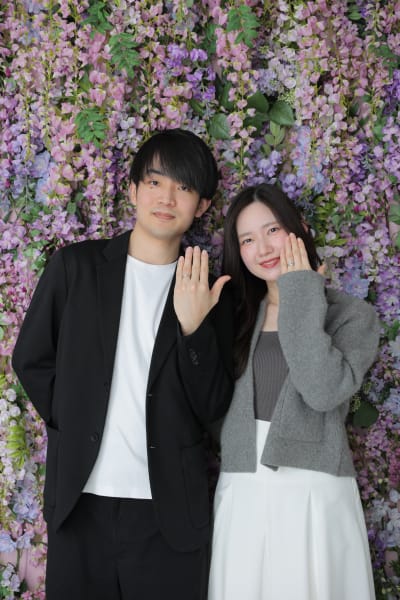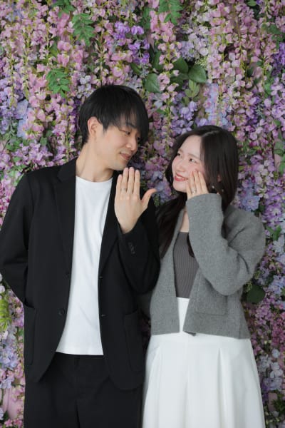 指輪をつけたばかりの手を、お二人が嬉しそうに見せ合う姿がとても印象的でした!