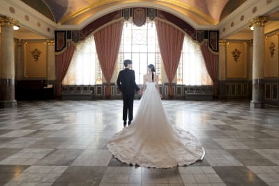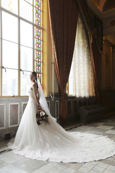 トレーンが長いお衣装ならではのお写真ですね☆