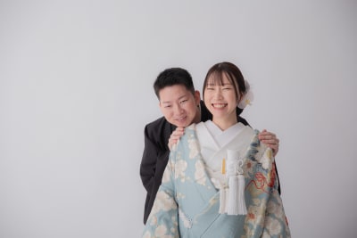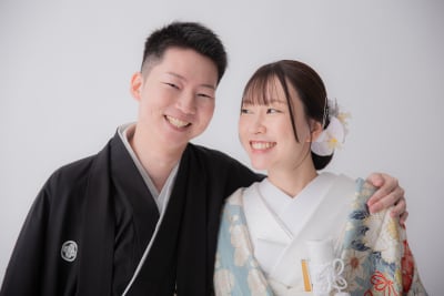 シンプルな背景で、おふたりの幸せな表情を主役にした一枚を