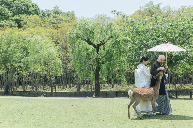 奈良での和装前撮り!鹿との触れ合いも楽しめる素敵な一日